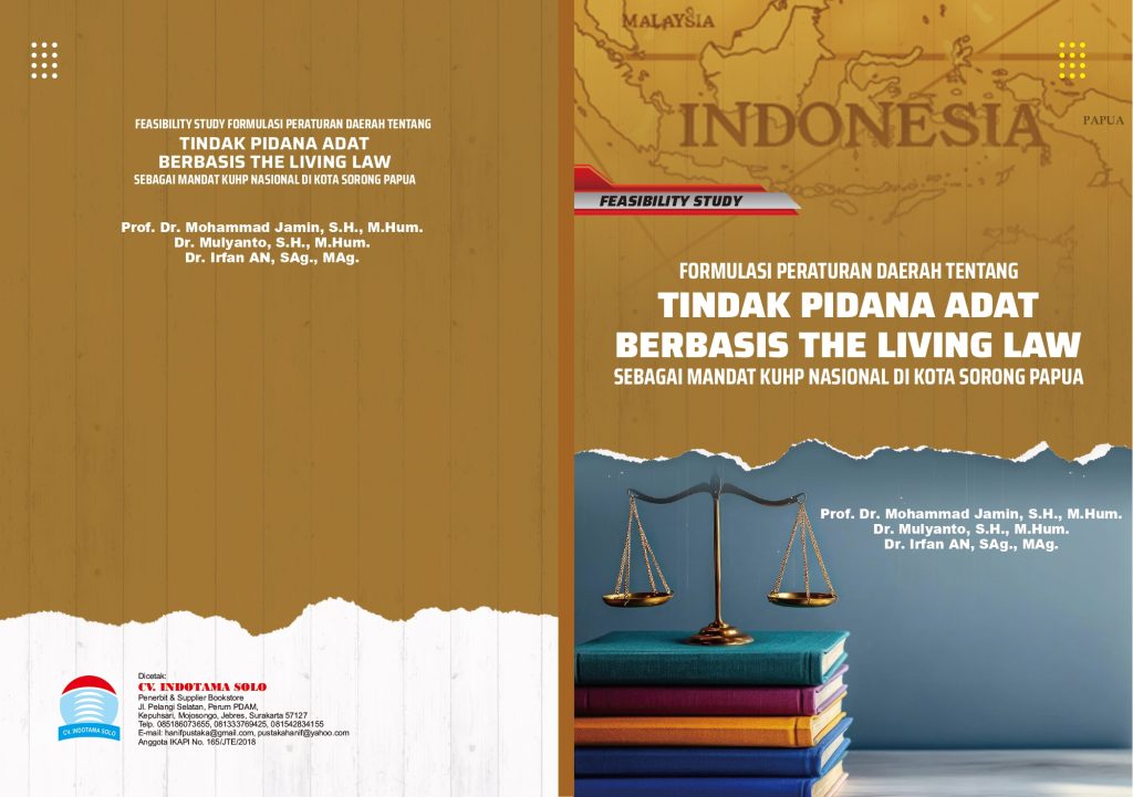 Buku yang membahas mengenai fisibilitas penyusunan Peraturan Daerah Kota Sorong tentang Tindak Pidana adat sebagai amanah Pasal 2 UU No. 1 Tahun 2023 tentang Kitab Undang-Undang Hukum Pidana (KUHP) yang menganut asas legalitas terbuka. Pasal 2 ayat (1) KUHP mengakui berlakunya the living law yang menentukan bahwa seseorang patut dipidana walaupun perbuatan tersebut tidak diatur dalam Undang-Undang. Dalam rangka memperkuat keberlakuan hukum yang hidup dalam masyarakat tersebut KUHPN memerintahkan dibuatnya Peraturan Daerah (Perda) yang mengatur mengenai Tindak Pidana adat tersebut. Mandat KUHPN tersebut kontradiktif dengan hakikat hukum adat sebagai living law yang tidak tertulis dan tumbuh berkembang dalam masyarakat, namun akan dirumuskan menjadi perda sebagai hukum positif tertulis dan Hukum adat akan berubah menjadi hukum yang kaku bahkan mati. Oleh karena dibutuhkan strategi model formulasi yang tepat agar Perda Tindak Pidana tidak justru mematikan living law.